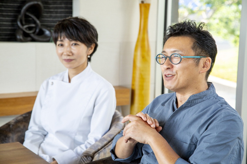 お店にお伺いすると、一ノ瀬さんと奥様の真砂さんが素敵な笑顔でお迎えくださり、ディナー営業時間前の店内は、お客様をお迎えする準備が整い、ちょっと背筋がピンとするような緊張感がありつつも、ソファに腰を下ろすと、なんとも居心地のよい落ち着いた空間で、楽しくお話を聞くことができました。