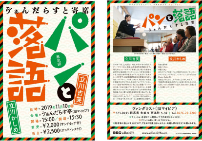 WANDERLUSTの店内でサンドイッチとお二人の高座が楽しめます。立川吉笑さんと言えば、「デザインあ」の『たぬき師匠』としてもおなじみですね。